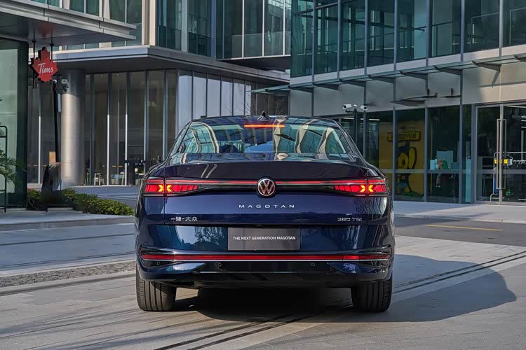车尾部分,新车采用了贯穿式尾灯,大众品牌LOGO下方还镌刻有“MAGOTAN”标识,尾灯的点亮效果十分炫酷,也和车头的前格栅、大灯组遥相呼应。车尾还采用了“小鸭尾”设计,搭配下方的贯穿式示宽灯,进一步强化车尾的运动效果。