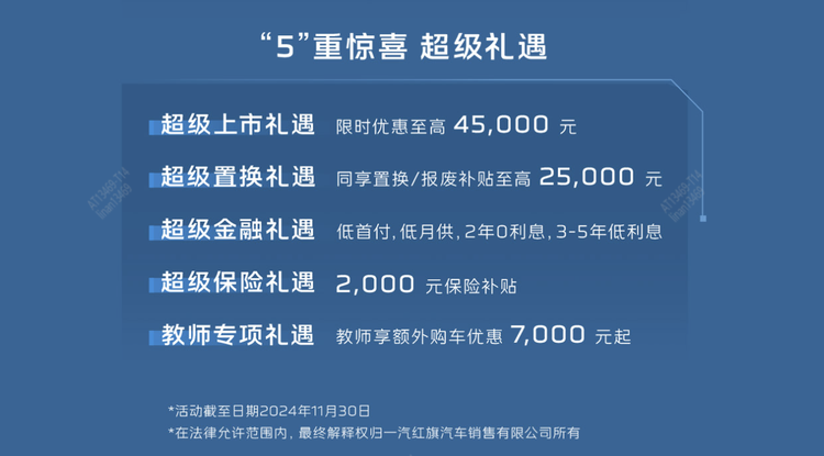 除了这些优惠以外,红旗的多款车型现在还有不同幅度的终端优惠,具体可以联系当地的经销商了解。