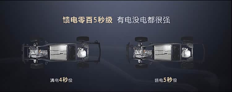 日常用车当然会用EV模式,原因是充电行驶的成本低,NVH表现也更好。所以插电混动汽车往往要有高功率的电动机,这是保证日常用车体验良好的基础。Hi4-Z混动系统由两台电动机组成,虽然电动机功率和扭矩参数尚未确认,但是性能一定不会弱;其综合最大功率是715kW,满电加速最好成绩为4秒级,馈电也能达到5秒级。
