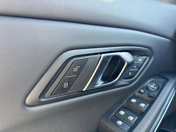 说到砍配置,我发现G20 LCI有几个配置被砍得特别不知所谓,第一个就是车门解锁按钮周围,之前是和门把手一样的金属材质,而现在被替换成了廉价感很足的硬塑料。