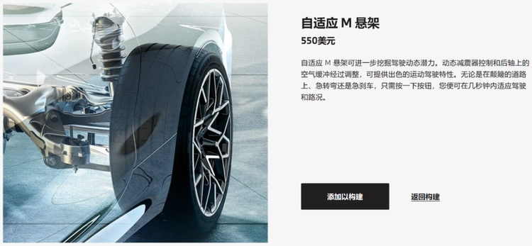 M340i标配M运动型悬挂和M运动型后差速器,后差速器想必各位都知道作用了,在M运动型悬挂的基础上,M340i还可以单独选装M自适应悬挂,通过实时调整每个车轮的阻尼力来增强驾驶动态和舒适度。舒适、运动、运动+和自适应模式,每种模式都会改变悬架特性: