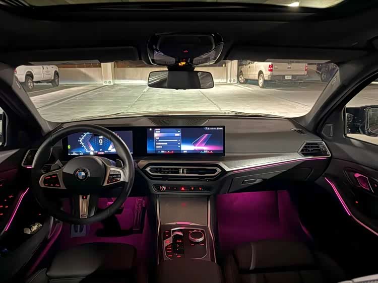 内饰方面就和普通3系更没有差别了,前期款车型还有个M340i的Logo在仪表盘和迎宾踏板上,LCI车型就只剩个M Logo了。