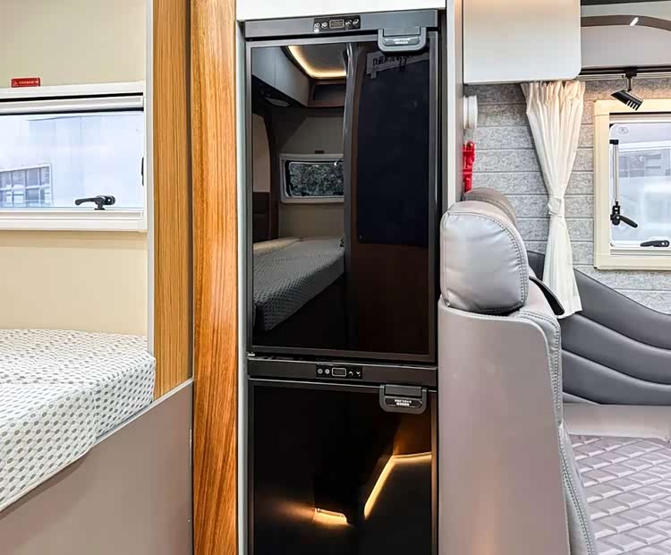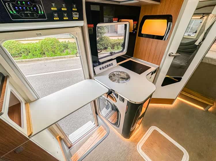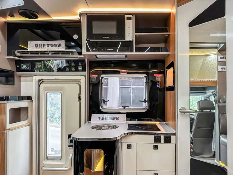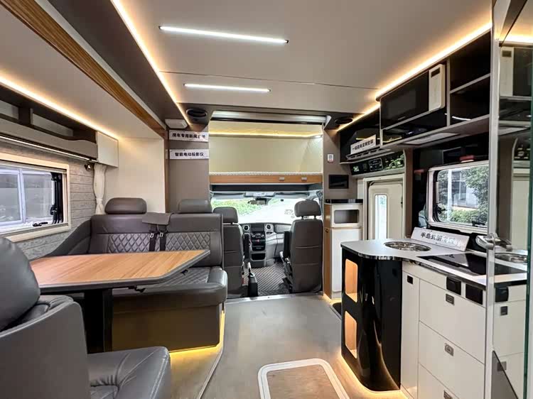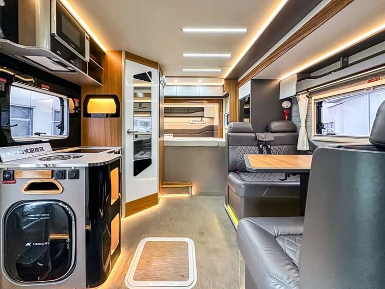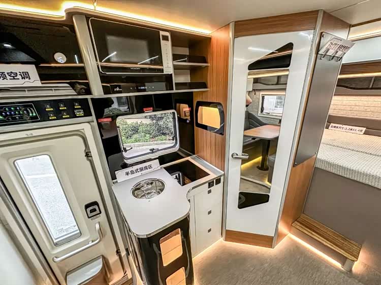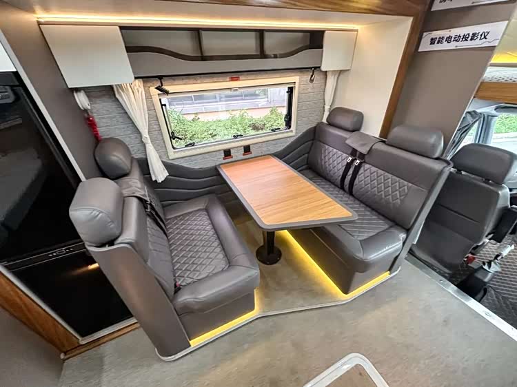 其他生活设施:152L车载冰箱、1.5P变频空调、3kg洗烘一体机、电动智能投影仪、燃油热水暖风系统等