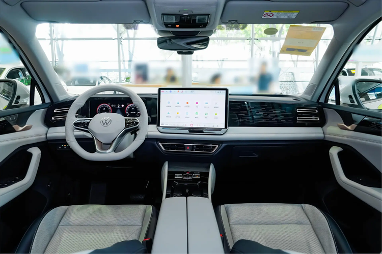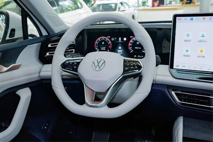 途观L则布局了10.3英寸数字仪表盘与15英寸触控屏组合,中控与门板之间的连贯撞色有比较强烈的环绕感,并在方向盘、屏幕等区域布局了更多数字触控结构,整个座舱的年轻感会比昂科威Plus做得更好一些,看上去也更前卫。