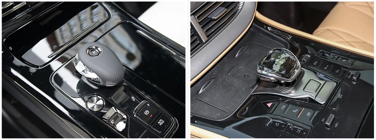 内饰方面,传祺M8和腾势D9都是一眼可见的豪华风格,都采用了中轴对称式的布局,更显方正、大气,用料以高级材料为主,同样是大尺寸中控屏搭配全液晶仪表盘;不同是的传祺M8采用了更多的直线条,看起来更加年轻化,三幅式方向盘和圆形数字仪表都是偏向运动风格的设计,同时水晶换挡杆也凸显了精致与豪华;腾势D9相对来说驾驶参与感并没有那么强,换挡杆也同样是水晶材质。