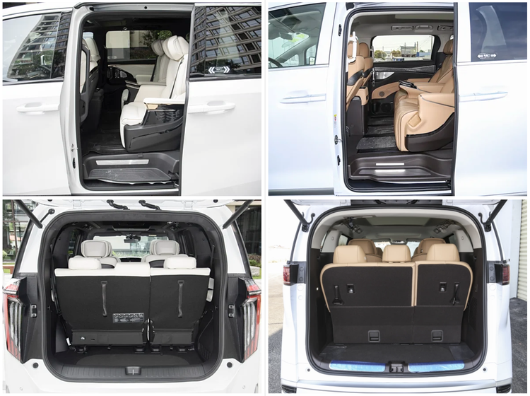 奥德赛造型方面更偏向家用风格,前脸采用更多镀铬装饰,车身线条圆润,整体设计更显紧凑。别克GL8方正且厚重的设计突出了商务属性,前脸多横幅格栅显得大气沉稳;尾部造型简洁,强调实用主义。总的来说,外形设计方面几台车都有各自的风格和特点,好看与否更多的是看大家的主观感受,但客观来说,由于车身尺寸的差异和风格取向的不同,传祺M8和腾势D9所呈现出的气场更为强大。