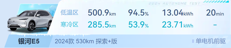 提到电动车,很多人第一反应就是“能跑多远?”确实,续航里程是电动车用户购车时最关心的因素之一。而吉利银河E5用实际行动回答了这个问题。根据官方数据,银河E5的最大续航里程可达530公里。银河E5还在极端环境下就进行了续航测试。在京津冀的低温测试中,银河E5实测成绩达到500.9公里;而在呼伦贝尔寒冷区,即便温度低至-15°C,它依然能跑285.5公里,续航达成率分别高达94.5%和53.9%。这样的成绩,足以让人对它的续航能力刮目相看。