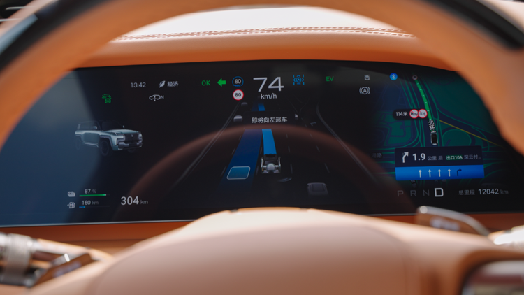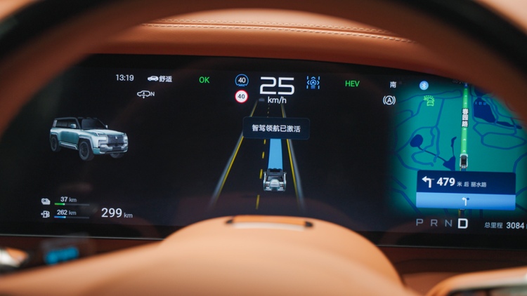 本次我们还重点试驾了仰望U8的“高快领航”,在开启智能领航后,车辆会快速进入智驾状态。其具有高效安全地智慧变道、智能上下匝道、平稳应对大曲率弯道、施工路况主动避让四大能力。