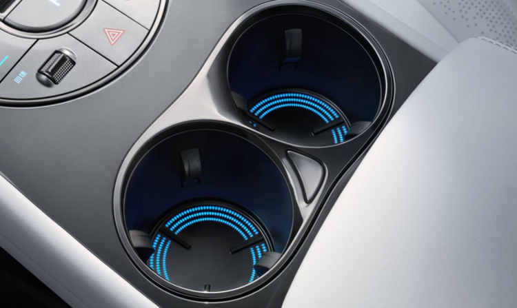 内饰设计以简约为主基调,具有海洋美学舒展柔美的同时又不失速度感,并采用多色氛围灯及创新的可升降杯托氛围灯,可配合丹拿音响进行律动变化,为用户带来氛围感驾乘体验。
