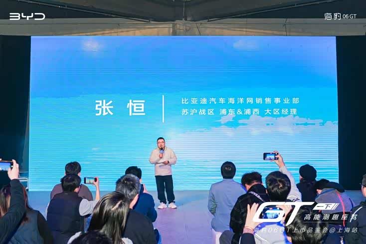 发布会上,比亚迪海洋网销售事业部苏沪战区浦东&浦西大区经理张恒先生登台致辞,表明了比亚迪年轻化和创新的使命,以及海豹06GT将进一步强化海豹车系IP,推动海豹车系向多元化和系列化方向发展,强化海洋网在高价值产品领域的布局,为年轻用户提供更全面、更高品质的驾乘体验。