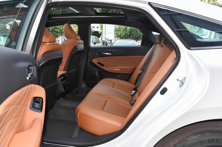 车身尺寸方面,除了有接近5米的车长之外,亚洲龙还有着1850mm的车宽以及1450mm的车身高度,轴距则是2870mm。从参数上来看,亚洲龙比凯美瑞、天籁这样的中级车要来的更“大只”,实际坐到第二排之后,身高1米78的乘客还能有超过2拳的腿部空间,而且它的座椅填充比较柔软,舒适度还算不错。不足之处也有,比如后排座椅对腿部的支撑度一般,而且后排中间的凸起比较高,不利于中间的乘客长时间乘坐。