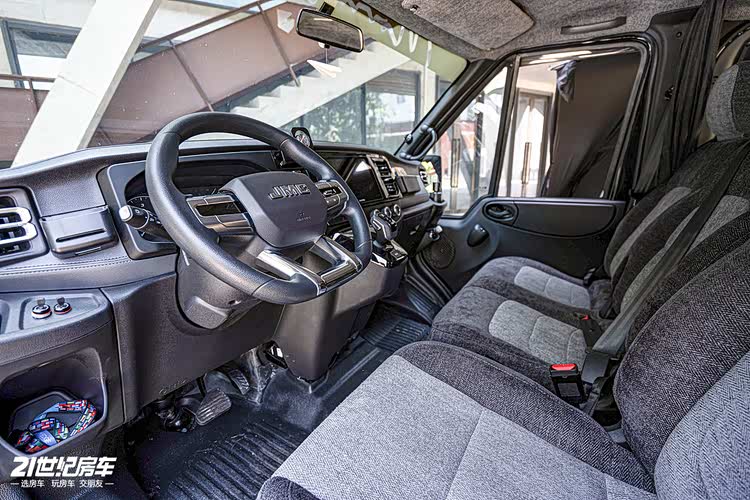 基于依维柯得意 A35 短轴低顶底盘打造,尺寸紧凑。动力为 2.5T 柴油发动机和 6AT 自动挡,驾驶室保持素车状态。新车长/宽/高分别为5222x2000x2370(mm),轴距为2800mm,尺寸相比传统B型车更显紧凑。