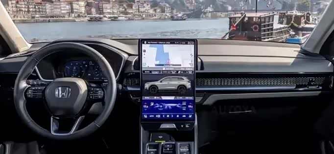 内饰方面,2025款本田CR-V采用了兼容并蓄的设计风格。左侧的主驾位保留了三幅式方向盘和液晶仪表,但中间的多媒体屏发生了巨大改变。新车采用了直立式的屏幕显示区,从上到下分别是地图显示、车机系统显示以及触控式的功能区。三者之间没有明显的隔断,使得整个内饰看起来更加简洁、大气。
