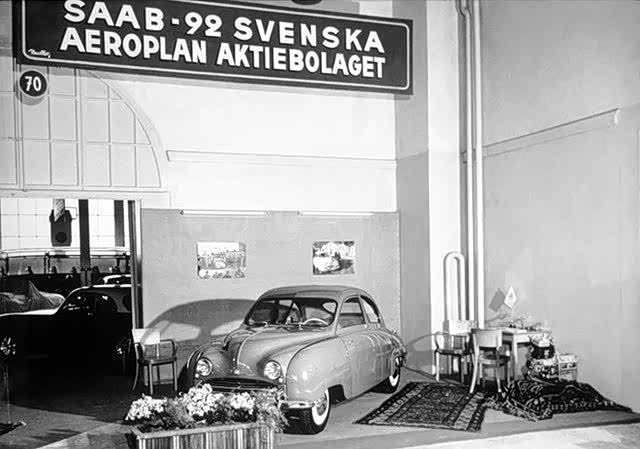 1947年,萨博推出了自己的第一款轿车产品SAAB 92。这款车搭载一台0.75L的2缸2冲程发动机,最大功率25马力,最高行驶速度可以达到105km/h。由于萨博在生产轿车的过程中应用了很多飞机制造方面的技术和经验,因此它旗下的第一款轿车产品SAAB 92就拥有了和飞机相似的轻质坚固结构以及符合空气动力学的外形,风阻系数更是仅有0.3cd。这在当时可以说是一个非常令人惊讶的数值,甚至比几十年后才推出的法拉利F40的风阻系数还要低。