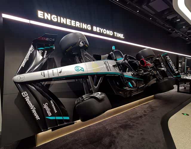 位于北京王府井中環的IWC万国表精品店,是品牌在中国的首家赛车主题精品店。进入到店内,首先映入眼帘的就是那台梅赛德斯-AMG F1 W15赛车,这是2024赛季梅赛德斯-AMG车队征战F1赛场的同款。