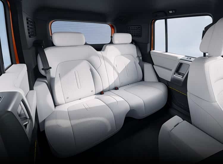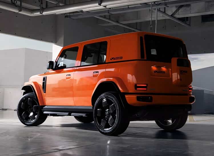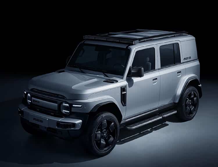 而且我认为,小尺寸可以用更加个性的外观设计来弥补,iCAR V23是一款比较典型的方盒子,整车设计采用了硬派越野车的风格,车身轮毂方正硬朗,细节部分如大灯组、前包围、外挂小书包、轮毂等等,也都有浓郁的越野车风格,很像一款小号的路虎卫士,车顶还预留了200KG的改装额度,可以自行加装行李架。