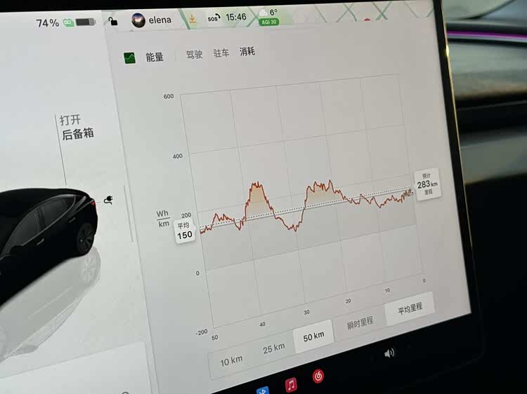 能耗方面,现在国内很多20万以上的车型都升级了800V架构,在充电功率和能耗方面有优势,而特斯拉依旧采用400V架构。我自己开出的能耗(较为激烈)为15kWh/100km,充电功率(第三方充电桩,从68%开始充电)最高达到了48kW,整体表现一般。
