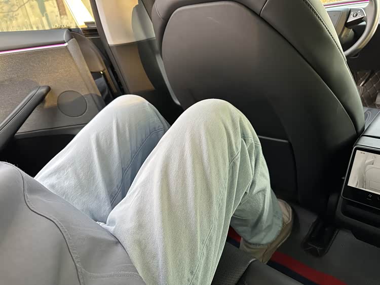 空间方面,Model 3的表现肯定算不上好,首先是前排坐姿问题,这辆车是轿跑车,车本来就不高,又因为电池的问题,车内坐姿又比较高,这样的话中控屏就容易顶腿,总之对于我这种180cm以上身高的人来说比较难受。后排腿部空间中规中矩,地板较高坐垫较短,腿部支撑性不够,坐姿比较蜷缩,只能算是短途应急的水平。