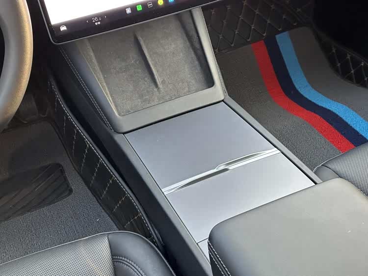 来到内饰,极简的设计风格,很多人说这套内饰是毛坯房,但其实单论用料新Model 3并不算差,大多数地方都是皮、布等软性材质覆盖,虽然中间的储物格盖子用了塑料饰板,但相比老款车型充满廉价感的钢琴烤漆工艺,新款车型换成了带有颗粒感的拉丝工艺,摸起来有点像铝,质感不错,此外整个内饰的做工也有明显的提升,各个零部件缝隙均匀,材质搭配得当,所以毛坯房这个观点只能说一半一半,整体看确实比较简陋,但用料和做工并不算“毛坯”。