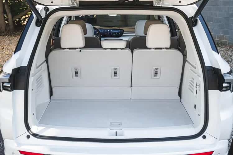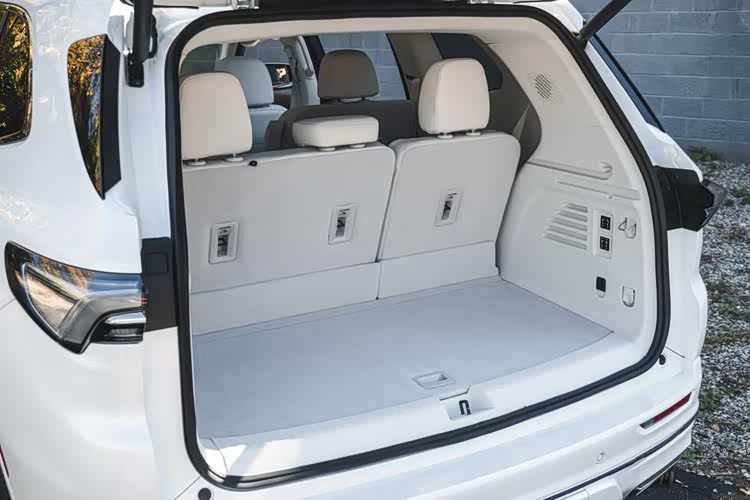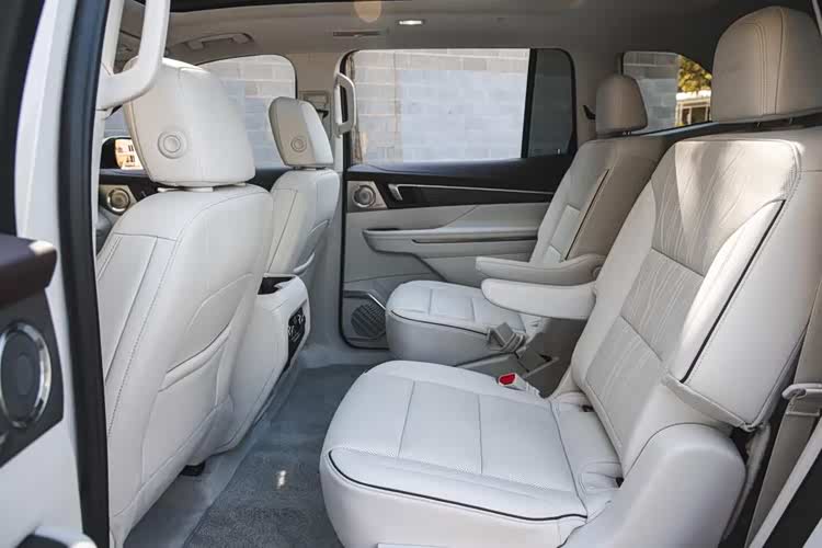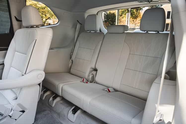 而由于5273毫米的车身长度和3070毫米的轴距,第2排和第3排空间方面自然不用担心,实拍车型有着双独立座椅的二排布局,提供了丰富的可调的选项,精致的真皮面料填充,16扬声器Bose品牌音响律动气氛灯带等高端配置,虽然没有大冰箱大彩电,但也提供了不错的乘坐体验,更重要的是全景天窗还是可以打开的结构,进一步提升了开扬感,前两排座椅全部放倒之后可以形成近乎纯平的通铺式后备箱空间,虽然地台确实有些高,但最终后备箱容积也达到了惊人的2778升,显示了美系大尺寸SUV应有的实用性。
