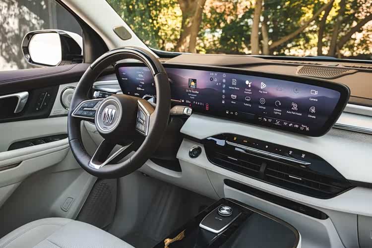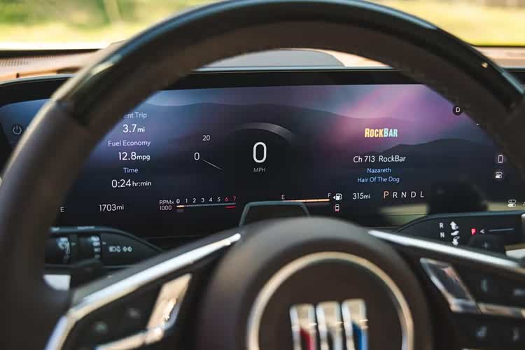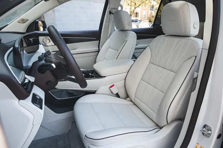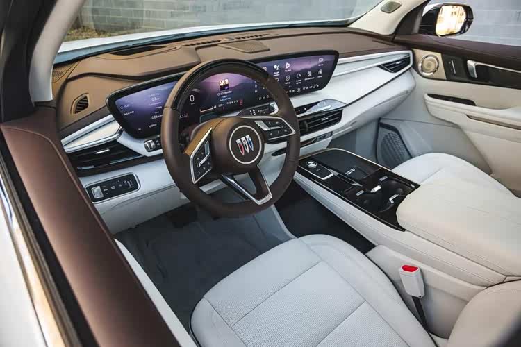 双边双出排气尺寸巨大,体现出燃油车型的身份。在内饰部分,当然也延续了家族风格,由于体量等原因看起来更像GL8或者世纪车型,贯穿式悬浮式大屏倒梯型微微向驾驶的偏转,Hud抬头显示不会缺席,层次感丰富的中控台面有多种撞色工艺和精致的木纹面板覆盖,体现出出色的豪华感,方向盘已经是全新的样式,兼顾了运动感和高级感,扶手箱前端区域开放式的储物格,精致的旋钮等元素与怀挡形成搭配,门板装饰相当的高级,体现出了真旗舰车型拥有的姿态,不得不说,如果不引进国内多少有些令人遗憾,这套设计从精致度上来讲其实并不输凯迪拉克这个定位更多高端的品牌。