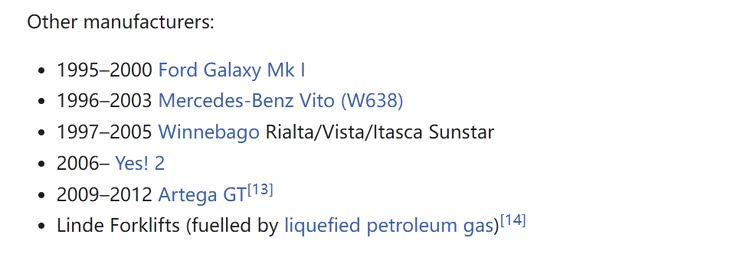 VR6还用于许多非大众车型,例如保时捷卡宴、奥迪Q6、奥迪Q7、奥迪 TT、西雅特Leon、西雅特Alhambra、斯柯达 Superb、福特Galaxy、梅赛德斯Vito等。除了我们提到的量产车之外,大众还于2009年秘密开发了第六代高尔夫原型车,该车搭载3.2T涡轮增压VR6发动机,额定功率高达463马力,足以看出VR6的潜力。
