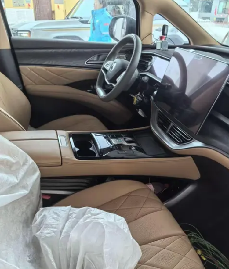 要说最大的变化自然就是高阶智驾版本车型,大家也都知道比亚迪在其下的方程豹以及腾势等品牌已经开始推广高阶智驾系统,豹8和豹5都已经有了,而腾势D9作为主销车型自然也会有。从目前网络上曝光的谍照图可以看到,在车头顶中间的位置有一个非常大的激光雷达,目前有两种说法,一种说会搭载比亚迪的Dipilot300天神之眼高阶智能驾驶辅助系统,还有一种说法是类似于方程豹使用来自华为的ADS 3.0系统。但我们觉得比亚迪自己的系统可能性更大一些,毕竟比亚迪年初的时候就强调自己将会在智驾系统方面投入大量的人力物力,跟别人合作很关键,但是自己拥有类似的系统也很关键。