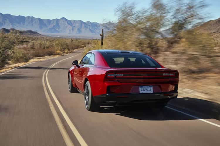 关闭 Daytona 的防滑角辅助系统,在漂移模式下甩尾时,限滑差速器和相对均衡的重量分布,让它比起车头较重的燃油版车型更难控制回正。但这种中性的姿态,结合更低的重心和不错的车身控制,使其操控性更好,转向不足现象明显减少。虽然在赛道上它感觉庞大笨重,但在蜿蜒的乡村道路上,它能像更轻的车一样灵活响应操作指令。方形方向盘转向直接,但缺乏路感。R/T 车型的被动悬架设置表现也不错,但在较粗糙的城市路面上行驶时颠簸感更明显。