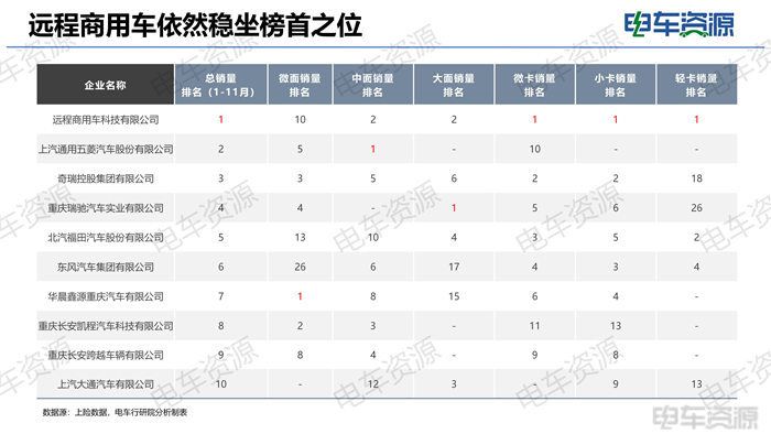 远程商用车稳坐榜首之位,切全部细分市场均排前十