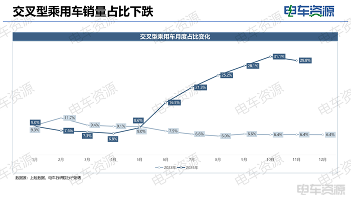 交叉型乘用车销量占比下跌