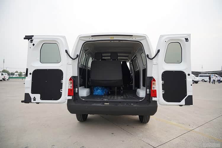 尺寸方面,开瑞江豚E7客运版采用和货运版同规格车身,整车尺寸为5150*1760*2085mm,轴距达到3250mm,采用单侧侧滑门+对开式尾门,侧门开口度达1007mm,座椅支持6/7/9座布局,且后排座椅可实现侧挂,厢内纵深达到3800mm,有足够的装载空间。