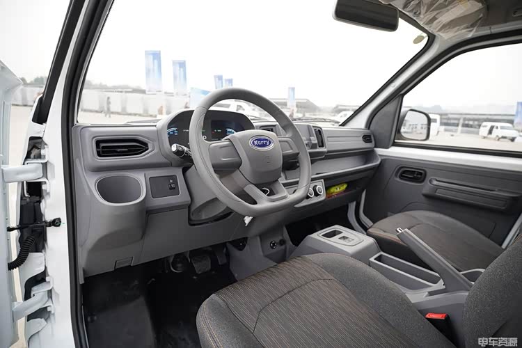 内饰方面,开瑞江豚E5客运版的驾驶室采用了开瑞家族化设计,实用为主,中控采用的是两个手机支架的设计,相当便捷,同时D字形的方向盘可以给司机更好的操作空间和上下空间。在细节上,开瑞江豚E5客运版在整个驾驶台上还有高达17个储物空间,尤其是主驾驶左侧空调出风口的大尺寸杯架和副驾前方带有弧度的开放储物格,相当便捷。