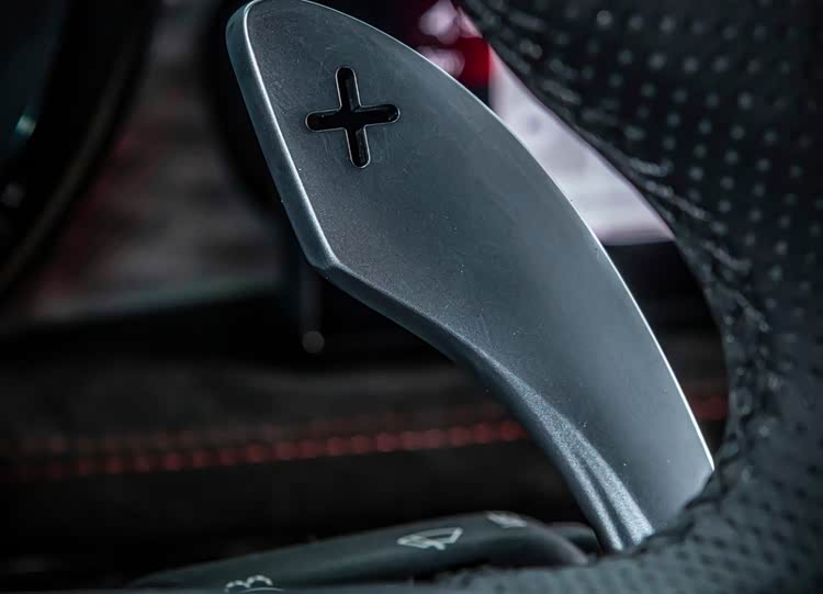 而赛道版的DSV双阀主动可调减振器增加了一个阀门,供应商变成了Marelli,减震器内有一个特殊的电动阀门,可提供独立的阻尼曲线。有两种模式可供选择,包括舒适和运动。其中运动模式可以与关闭的车身稳定系统配合,减少车身运动,通过专用按钮,可以激活运动模式。同价位使用双阀减震器的车有大众探岳L等,但后者更注重乘坐舒适度。
