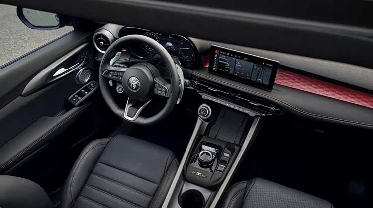 但阿尔法罗密欧并没有这样做,驾驶乐趣依旧是这个品牌的核心,新型 4 缸涡轮增压发动机优化了热力学设计,采用高压缩比设计,将紧凑燃烧室的气缸盖改进,加上双可变气门正时技术和特殊的“高滚流”进气管,以及350bar的高压缸内直喷,2.0T发动机的输出功率为268马力,全系没有差异。