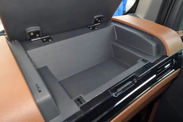贯通中控台根据主副驾需求做了针对性的功能分区,并通过不同配色加以强化,副驾位置对应部分还做了隐藏式的储物收纳空间。
