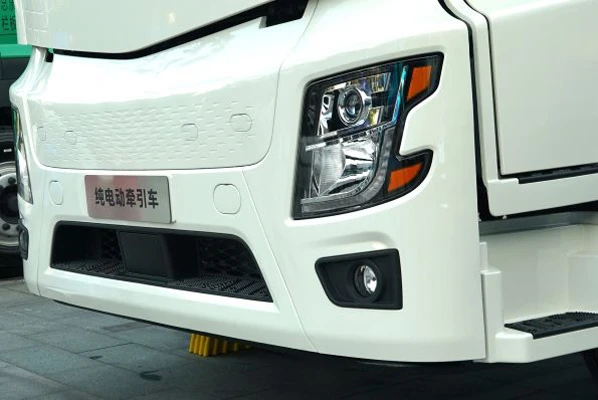 广汽日野6×4纯电牵引车搭配全新的驾驶室造型,前脸中网部分采用整体面板,集团LOGO突出了广汽新能源商用车属性,也与之前的燃油动力重卡有所区别。