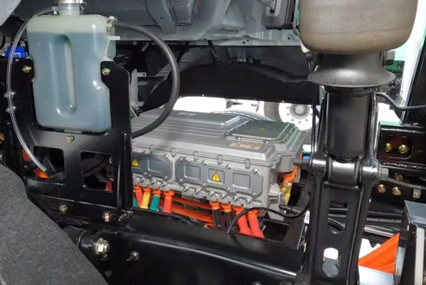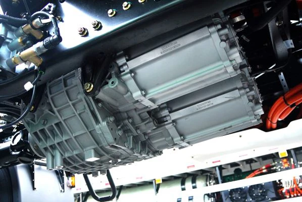 匹配特百佳电机高速双电机+4AMT和多合一控制器的4挡中央驱动系统。其中,高速双电机额定/峰值功率330/460kWh,最大输出扭矩达到21000N•m,起步快、爬坡能力强;整车还搭载智能动态车重识别技术,可以实现高效的能量回收,部分场景综合电耗可低至1.3kWh/km。