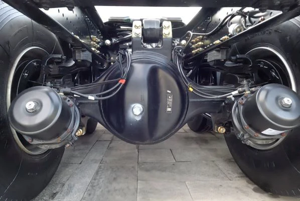 实拍车辆驱动桥采用5.143速比11.5T德纳桥,传动效率高、自重轻、高承载,且维修保养便捷。
