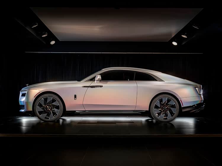 闪灵“月晕”(SPECTRE LUNAFLAIR),这款定制车型于2024年11月发布,其由一位美国客户定制,他在看到Phantom Syntopia后有了想法,同时从“月晕”中获得灵感。“月晕”是一种自然光学现象,月光穿过高而薄的白云(卷云、卷层云或卷积云)时,受冰晶折射影响形成一道彩色光圈。