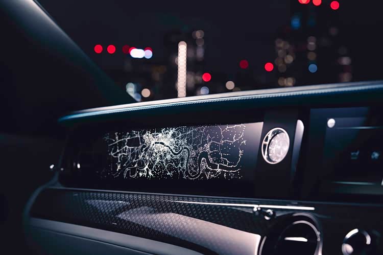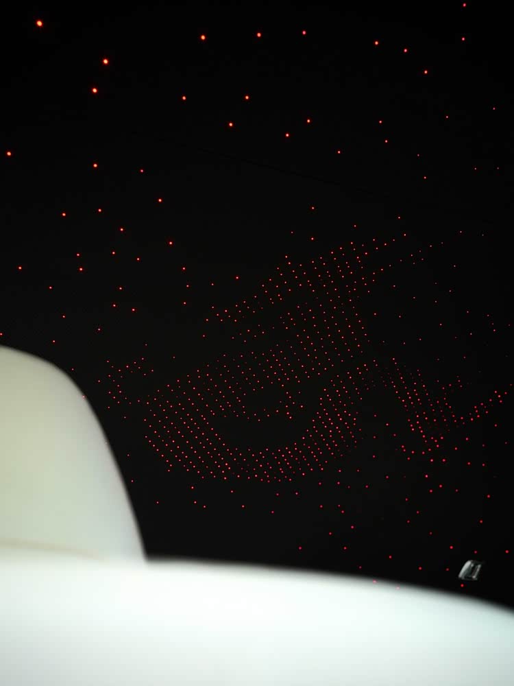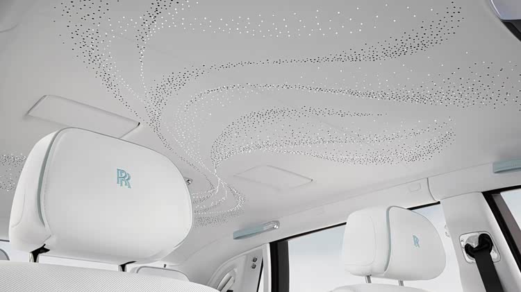 车内造型同样复杂,共计使用了869,500针,从而让图形变得连续。其中,副驾驶侧“艺廊”内镶嵌的艺术品由七条单独研磨的缎带组成,其表面也使用陶瓷处理;“星空顶”由1500颗光纤组成“星星”动画,灵感来自“欢庆女神”飘逸的礼服。