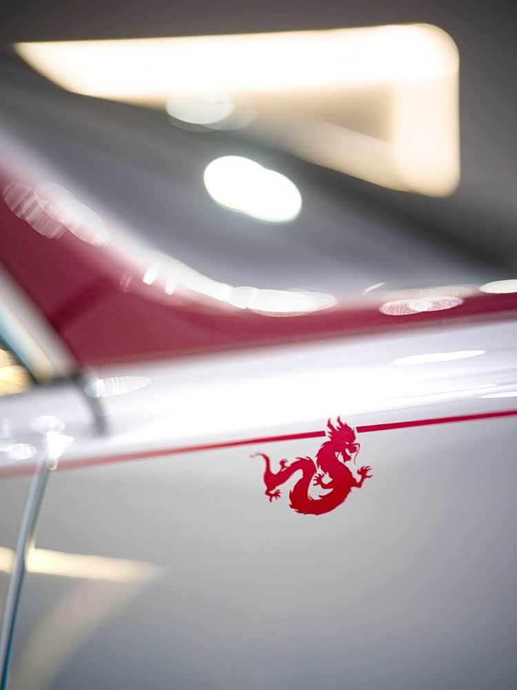 车内方面,前排乘客侧“艺廊”有独特的手绘艺术品,头枕上有专属“龙”刺绣,定制的“星空顶”由677颗“星星”组成,点亮后呈现“龙”图案。