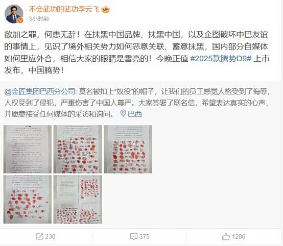 12月26日,比亚迪集团品牌及公关处总经理李云飞回应称,欲加之罪,何患无辞。