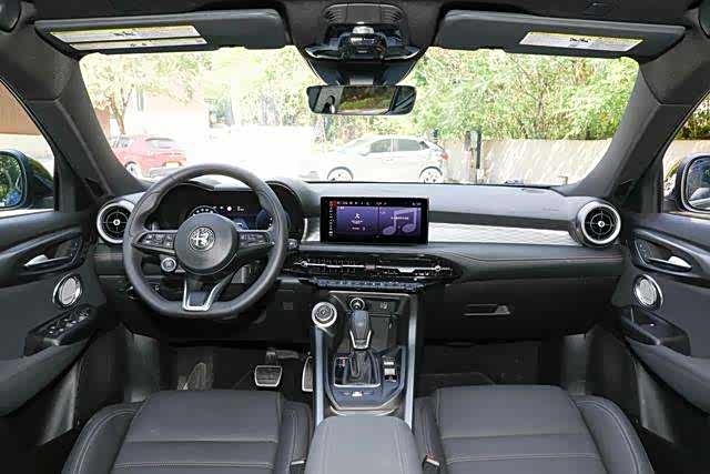 在2025款阿尔法·罗密欧Tonale托纳利的内部装饰设计中,中控台配备了三幅平底方向盘、12.3英寸的液晶显示设备以及10.25英寸的悬浮式中控屏。