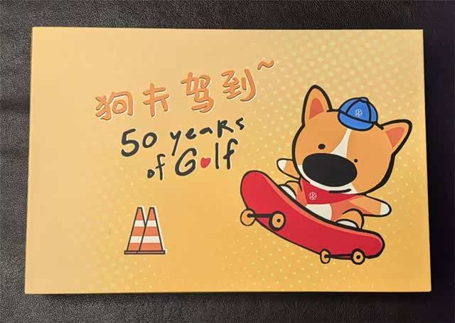 这份冰箱贴套装看起来很有趣,外盒封面是一只踩着滑板的酷飒“狗夫”——这是一汽-大众官方为高尔夫所取的昵称,大概是因为许多车友这么亲切地叫着,一汽-大众便顺应人心,通过全网征集的方式与用户共创,将这个名字定为官方昵称,便于传播。这个黄色萌犬的形象,是一汽-大众高尔夫“狗夫”官方IP形象,小小的眼睛大大的鼻子,奶呼呼的肚子,还系着一条红色围巾,看起来既萌趣又充满活力。