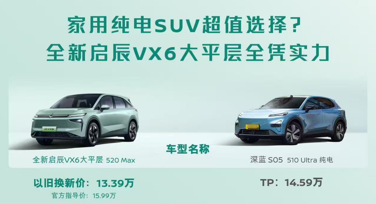其实我一开始觉得全新启辰VX6肯定会比深蓝S05贵,毕竟它打出了“C级尺寸,E级空间”的牌,感觉是个大块头。但在实际了解价格后,我发现两者的差距并不大。对我们这种家庭来说,全新启辰VX6的空间和配置,完全值回票价。