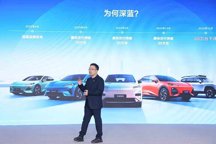 深蓝汽车总裁邓承浩在现场深情致谢每一位用户、生态伙伴及全体员工,他强调,作为长安汽车“香格里拉”、“北斗天枢”和“海纳百川”三大战略的核心承载,深蓝汽车始终秉持“技术为根、产品为本、用户为王”的品牌理念,而这正是深蓝不断创造成长纪录的源动力。12月,深蓝汽车交付量突破3.6万辆,2024年全年交付量超过24万辆。2025年,深蓝将全力冲刺全球销量50万辆的目标,其中国内市场预计达到40万辆,海外市场10万辆,塑造国企新能源新标杆。