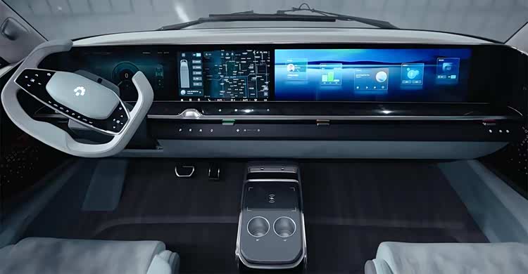 内饰部分,新车的中控台使用了轿车化的设计风格,横贯式的大连屏有着不错的科技感。两幅式的方向盘造型很运动,下部的副中控台提供了手机无线充电板以及两个杯架。另外新车为两座布局。