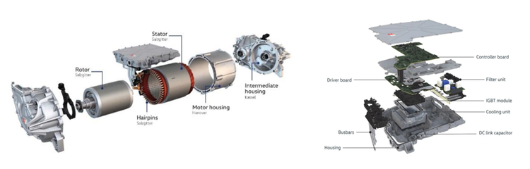 后驱永磁同步电机采用了发卡式(Hair-Pin)绕组方式,需要更加先进的绕组工艺,好处是使得导线更密集,从而提高槽满率。