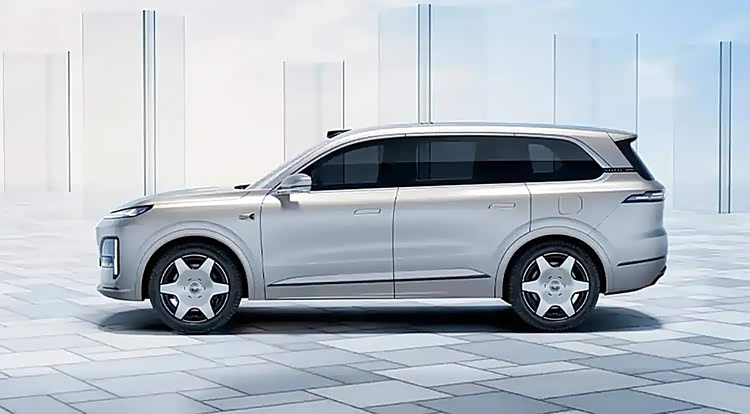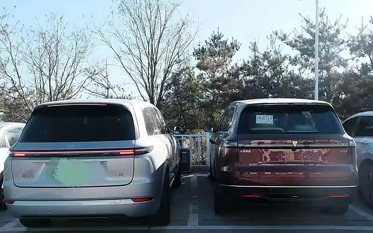 这辆车的尺寸为5205/1996/1800mm,同时其轴距已经增加到3105mm。当我们把理想的L9(轴距3105mm 长宽高5218/1998/1800mm)与问界M9(轴距3110mm 长宽高5230/1999/1800mm)做对比时,两者之间的差异其实并不那么显著。其庞大的体型与丰满的外形完美结合,营造出一种强烈的氛围,同时21英寸的复古“大饼”轮毂和电动侧踏板进一步加强了它的豪华感。车窗的四边装饰着镀铬饰条,并搭配了隐蔽的门把手,这使得它的外观与理想的L9非常接近。