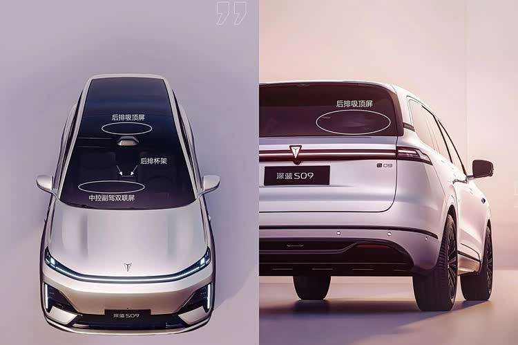 虽然深蓝S09的内部装潢尚未向大众公开,但从其官方发布的照片中,我们可以推测它可能会采用与理想的L9类似的双屏设计,这包括中央控制屏幕、副驾驶娱乐屏,以及一个大型的HUD抬头显示功能。这款车的内饰设计遵循了2+2+2的六种座椅模式,并为驾驶者创造了一个“超级”的多用途空间。根据预测,中央扶手的尾端可能会配备双杯架和车内冰箱,同时预期后排的吸顶屏和双零重力座椅将会持续存在。根据官方发布的消息,深蓝S09即将配备华为乾崑最新的智能驾驶系统,这很可能是ADS 3.0的升级版本,并且还将具备“车位到车位”的智能驾驶功能。